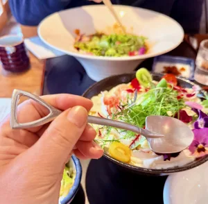 基本的な食べ方も書いてありました。底から掻き回さずに、上の層から、つまりうどんから食べていくという事です。