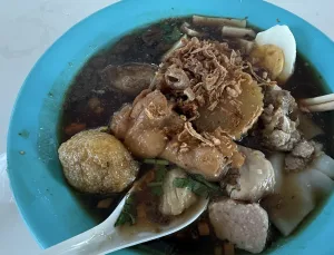 とろみのあるスープは、シナモンや八角が香る中華風。少し甘めの味付けなので、タイ人は調味料を追加して自分好みに仕上げるのが定番。