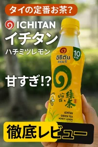 タイのコンビニやスーパーでよく見かける黄色のボトルドリンク。「ICHITAN GREEN TEA HONEY LEMON(อิชิตัน กรีนที ฮันนี่เลม่อน)」という商品です。