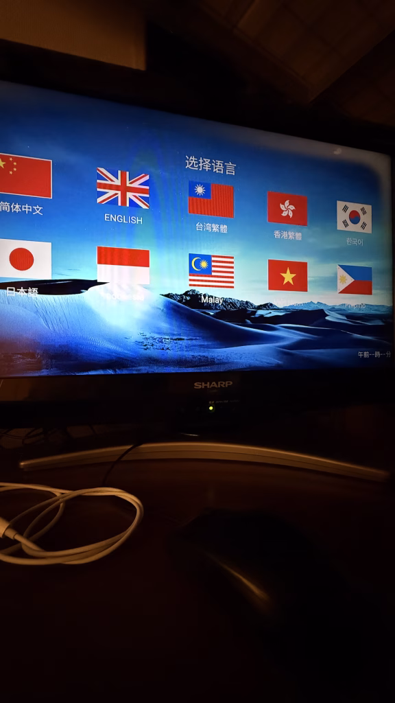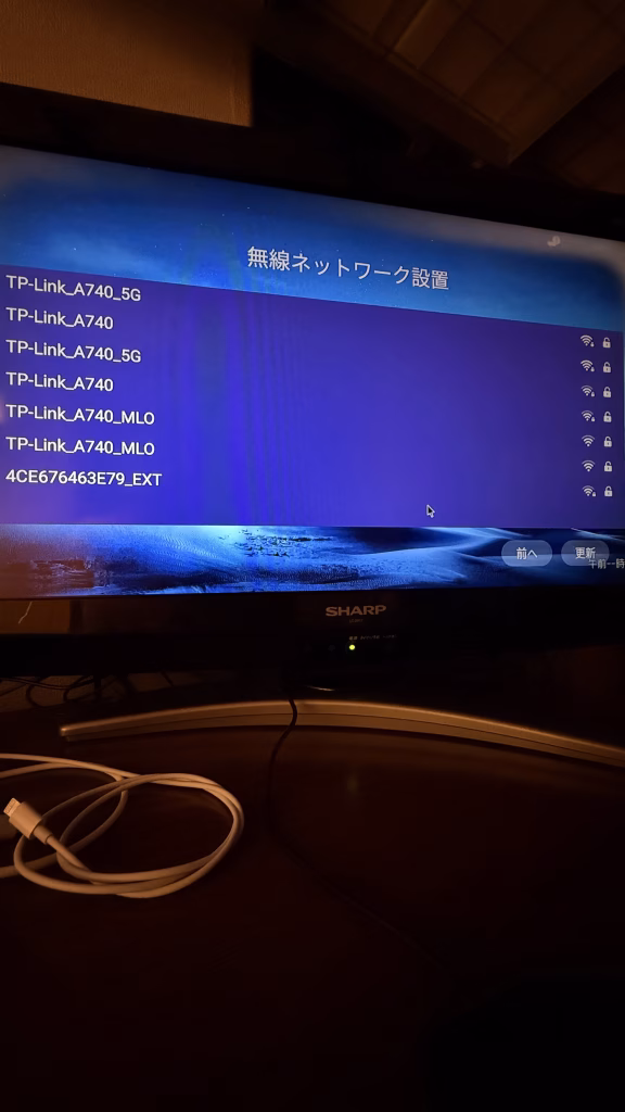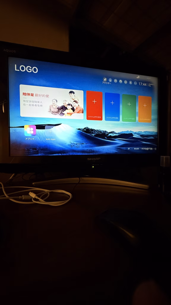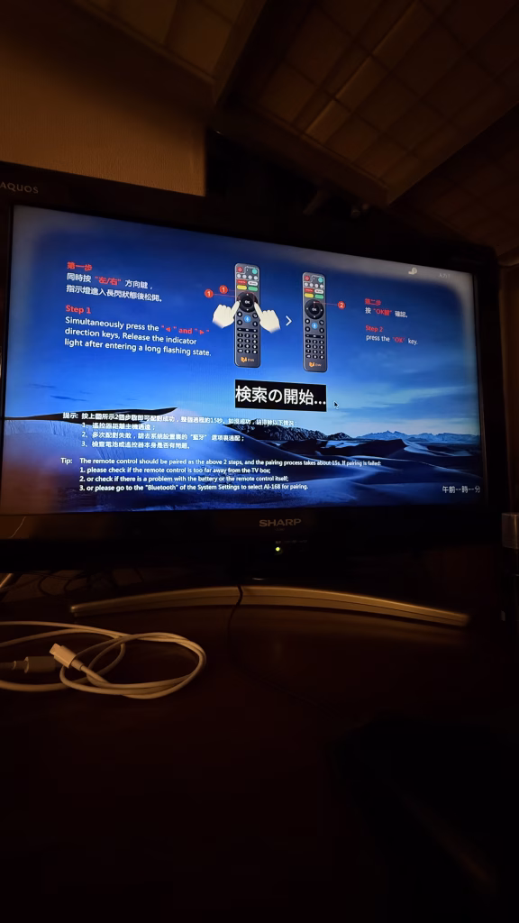 有線マウスを繋ぐ、電源、HDMIを繋いで、TVの電源をONする。